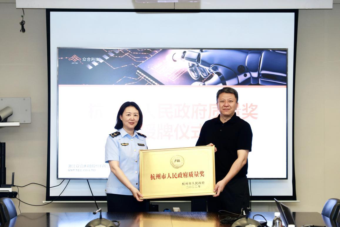 6月19日,高新區(qū)(濱江)市場(chǎng)監(jiān)管局黨委書(shū)記、局長(zhǎng)史瓊帶隊(duì)走訪調(diào)研眾合科技,為公司頒發(fā)“杭州市人民政府質(zhì)量獎(jiǎng)”獎(jiǎng)牌和證書(shū)。眾合科技總裁邊勁飛、職能副總裁鄭曉亞、首席質(zhì)量官章鳳琴熱情接待。