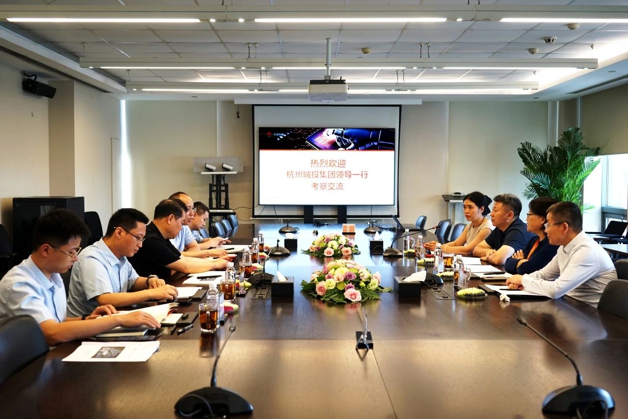 7月7日,浙江省杭州市城投集團(tuán)黨委書記兼董事長李紅良、投資發(fā)展部部長李炳、辦公室龔嘉為及杭州市城投資本集團(tuán)黨委書記兼董事長萬明勇、總經(jīng)理?xiàng)罡甑纫恍猩W臨眾合科技參觀考察。眾合科技董事長潘麗春帶領(lǐng)公司高管陪同參觀交流。