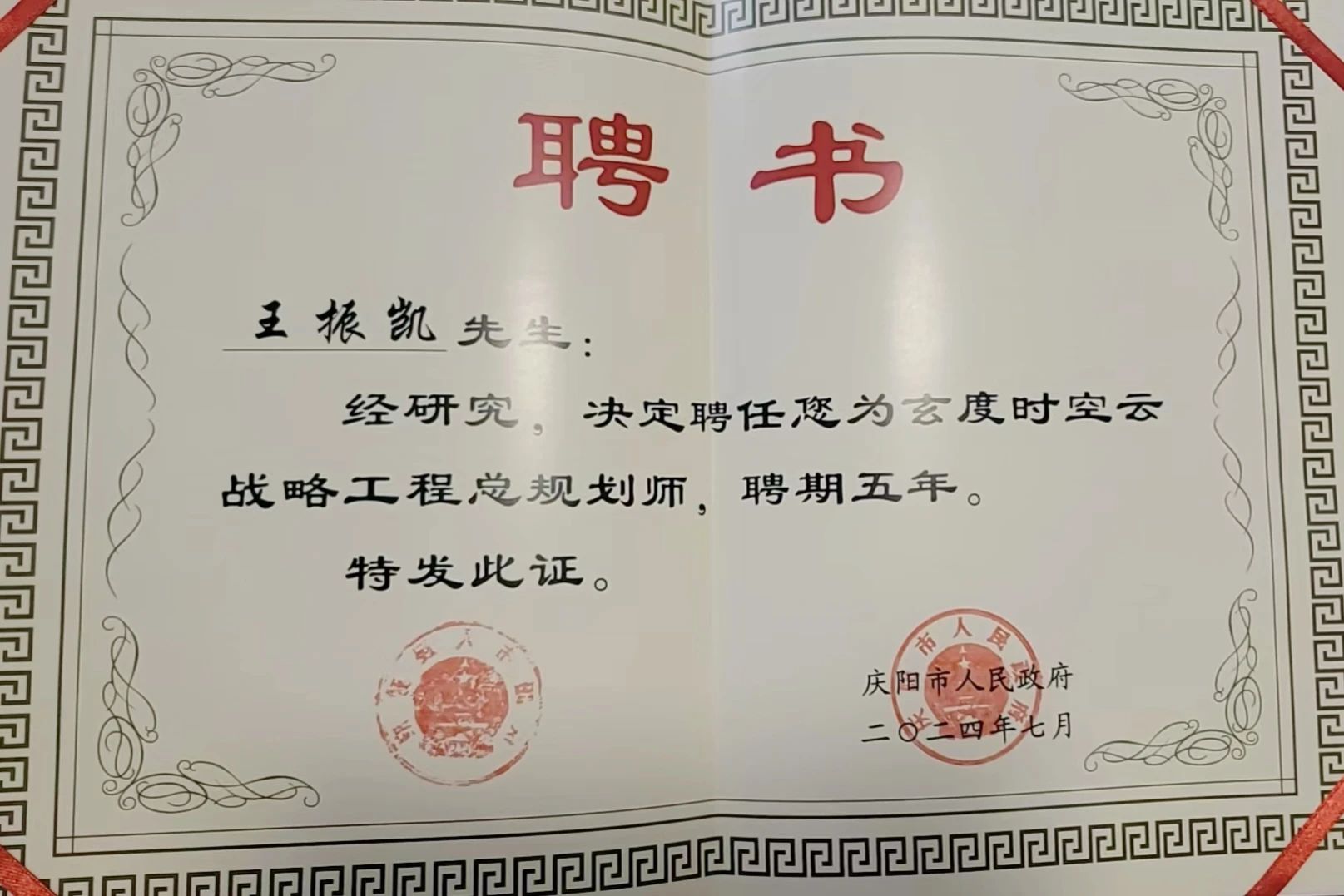 ▲ 眾合科技副總裁被慶陽市人民政府聘任為玄度時(shí)空云戰(zhàn)略工程總規(guī)劃師