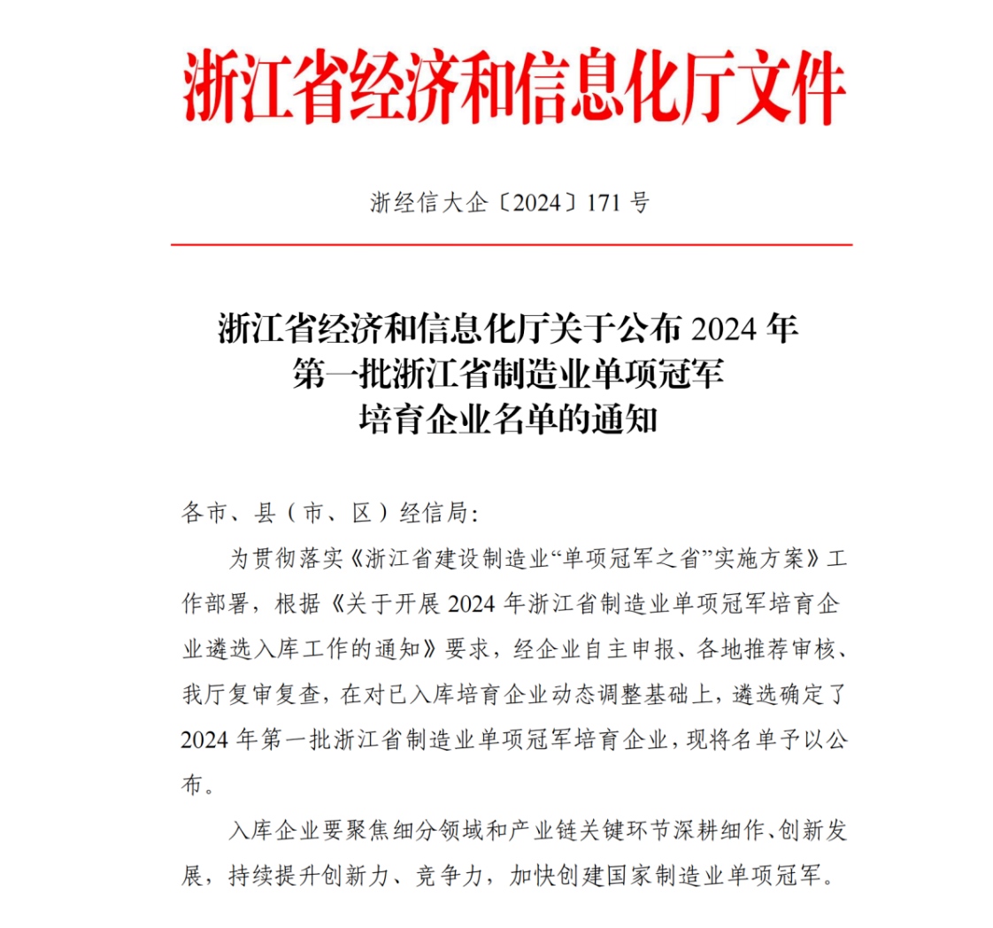 8月23日,浙江省經(jīng)濟和信息化廳公布了2024年第一批浙江省制造業(yè)單項冠軍培育企業(yè)名單,根據(jù)《關于開展2024年浙江省制造業(yè)單項冠軍培育企業(yè)遴選入庫工作的通知》要求,經(jīng)企業(yè)自主申報、各地推薦審核、省廳復審復查,眾合科技控股子公司浙江海納半導體股份有限公司成功上榜。