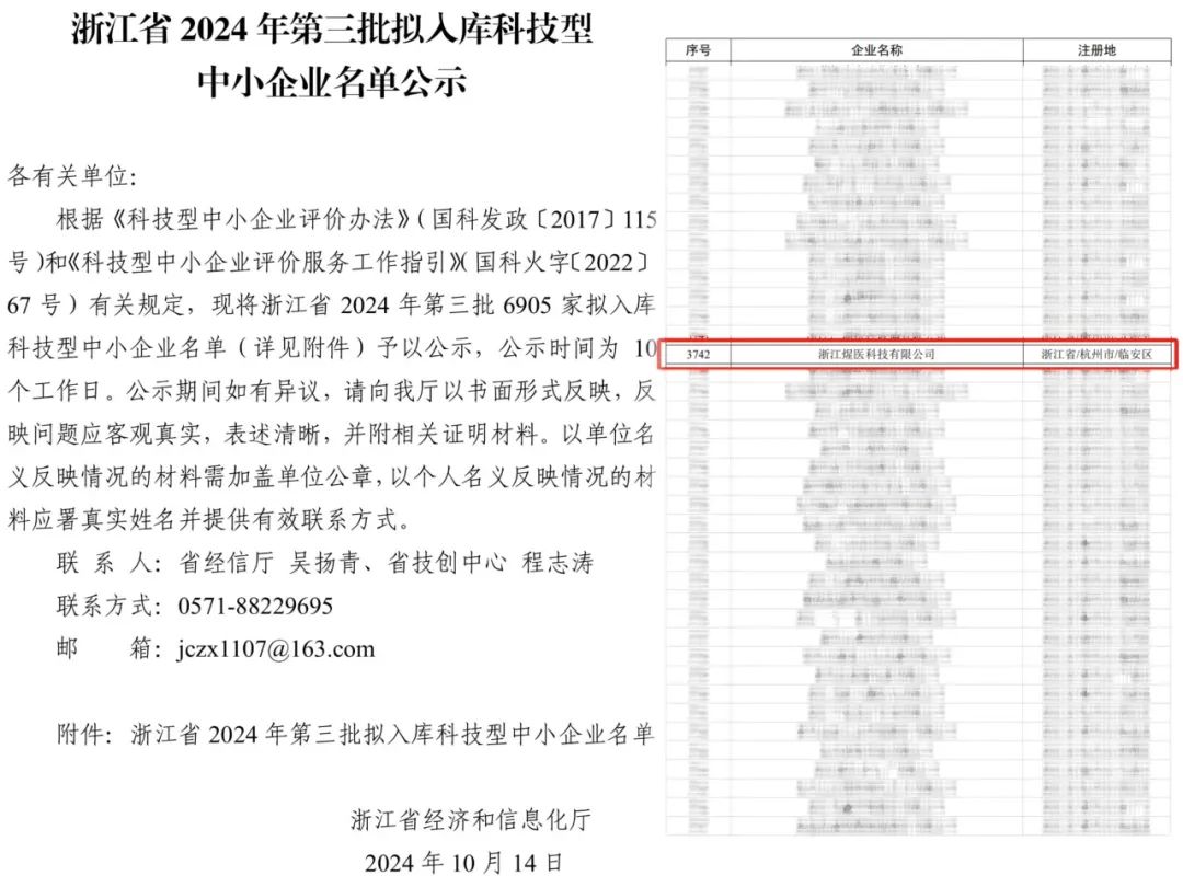 近日,浙江省經(jīng)濟(jì)和信息化廳印發(fā)《浙江省科技廳關(guān)于2024年第三批擬入庫科技型中小企業(yè)名單的公示》。眾合科技旗下浙江煋醫(yī)科技有限公司被認(rèn)定為“國家科技型中小企業(yè)”,并被納入2024年第三批國家科技型中小企業(yè)信息庫。