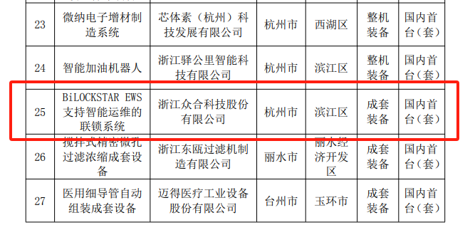 近日,由浙江省經(jīng)濟(jì)和信息化廳、浙江省財政廳聯(lián)合開展的2024年度首臺(套)裝備認(rèn)定結(jié)果正式公示,眾合科技自主研發(fā)的“BiLOCKSTAR EWS支持智能運(yùn)維的聯(lián)鎖系統(tǒng)”,獲評2024 年度浙江省裝備制造業(yè)重點(diǎn)領(lǐng)域國內(nèi)首臺(套)認(rèn)定。