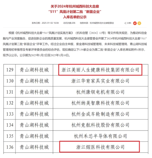 近日,杭州城西科創(chuàng)大走廊管理委員會(huì)公示了《2024年杭州城西科創(chuàng)大走廊“511”鳳凰計(jì)劃第二批“新苗企業(yè)”入庫名單》。眾合科技旗下浙江美麗人生健康科技集團(tuán)有限公司(下簡稱“美麗人生”)和浙江煋醫(yī)科技有限公司(下簡稱“煋醫(yī)科技”)雙雙入庫第二批“新苗企業(yè)”名單。這不僅是對(duì)兩家企業(yè)自主創(chuàng)新能力和市場前景的充分認(rèn)可,也意味著兩家公司將獲得一定的政策支持和配套服務(wù),為快速發(fā)展注入新的動(dòng)力。
